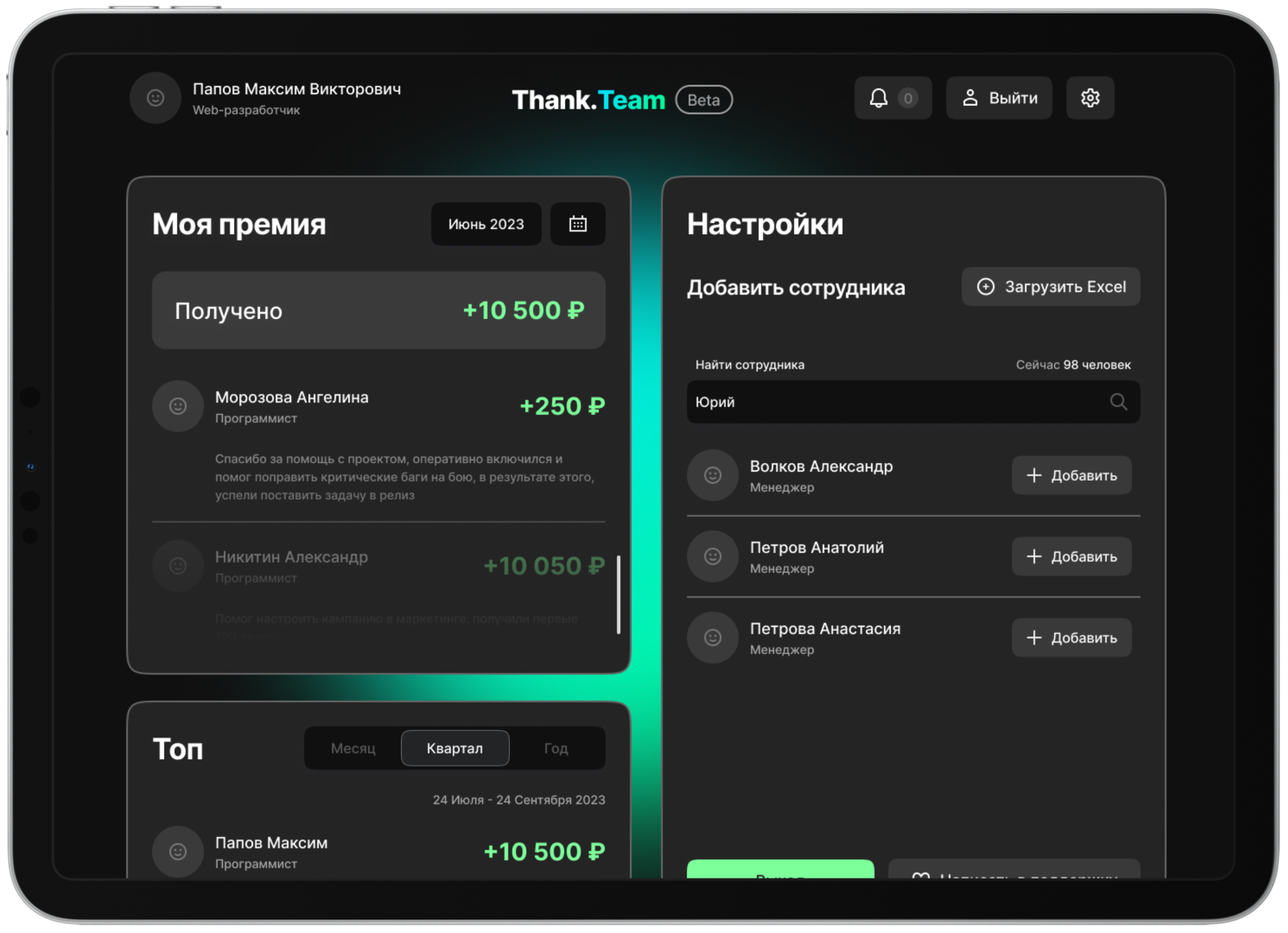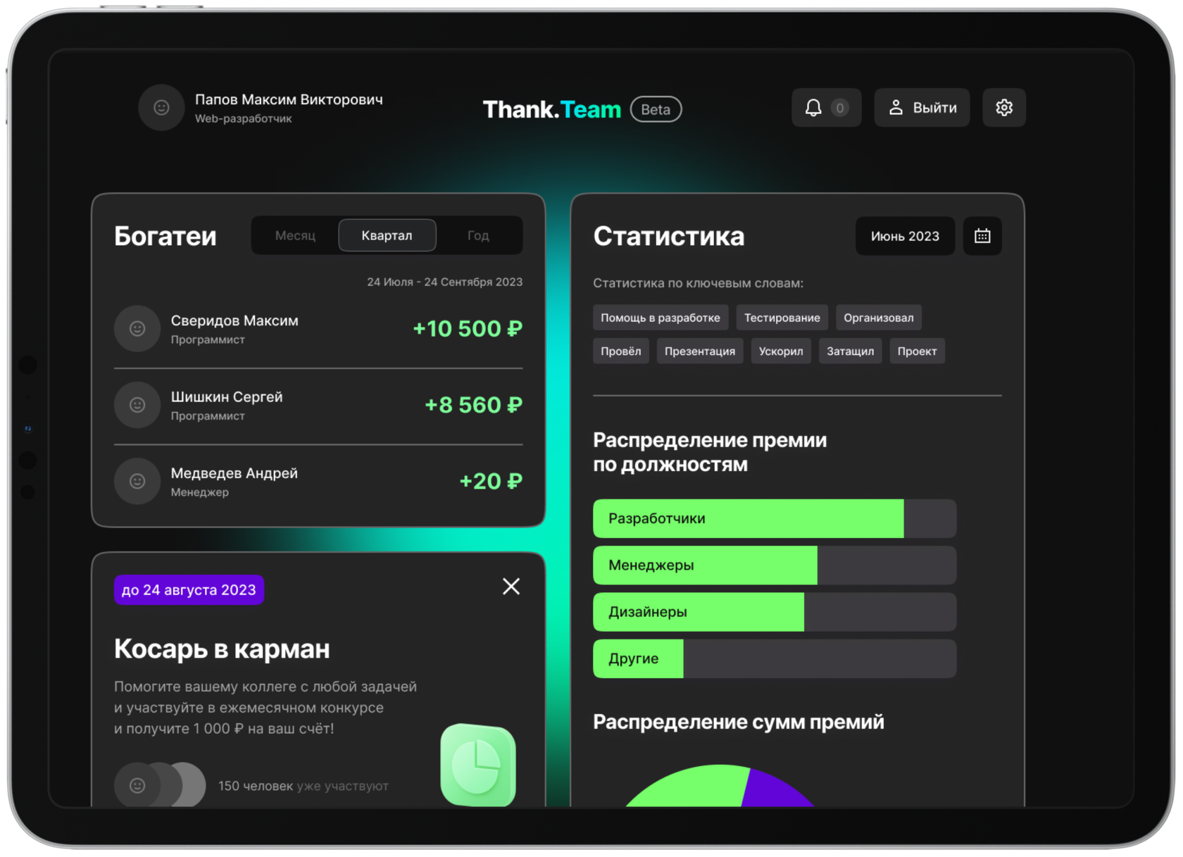 Выполняя общее дело, кто-то вкладывается больше и скромничает, а кто-то наоборот — меньше всех сделал и преувеличивает свой вклад. Теперь каждый сотрудник сможет поблагодарить друг друга и объяснить за что именно.